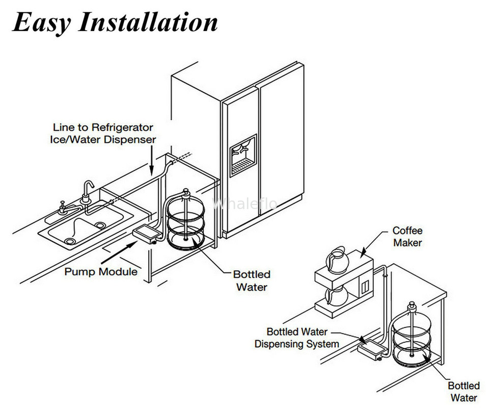 - Nuestra bomba de agua embotellada está diseñada para bombear agua de botellas de agua disponibles en el mercado.